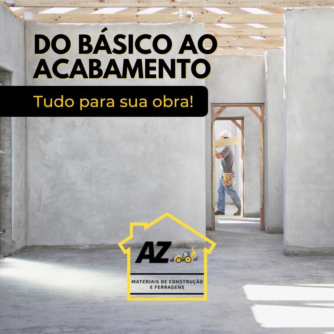 A AZ Materiais de Construção comercializa materiais brutos e de acabamentos, tintas, pisos, aberturas, elétrica e hidráulica, ferragens e serviços de mini escavadeira.